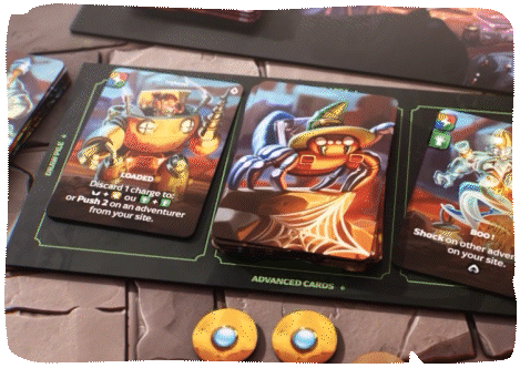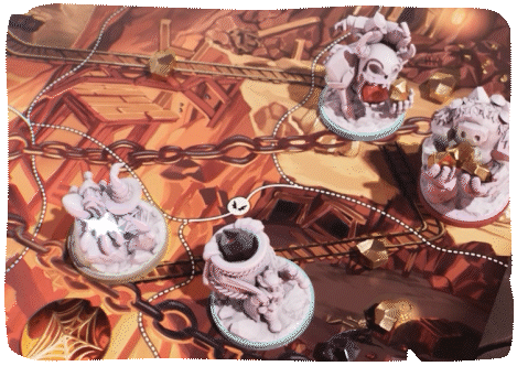 Illustrations vibrantes, aventuriers hauts en couleur et figurines transportant de véritables gemmes donnent vie à la mine directement sur votre table. Forgeflame prend vie sous vos yeux.