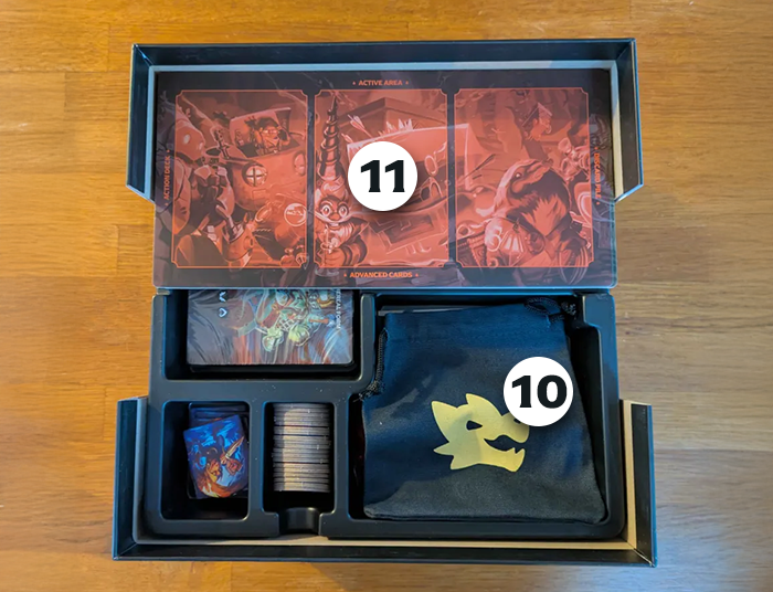 1️⃣1️⃣ Place the player boards in their slot, then lay the game board and rulebook on top.